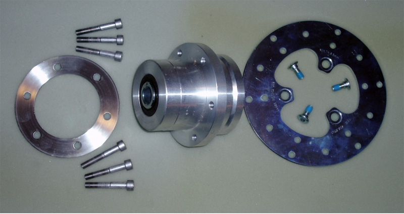 unten: Beiwagen-Radnabe mit 190mm Bremsscheibe für Speichenräder mit Moto Guzzi Radnabe. Lieferbar für: Ural, Dnepr |