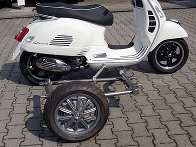 links: Kali RS1 mit 3.50x10 Bereifungan einer Vespa LX12 |