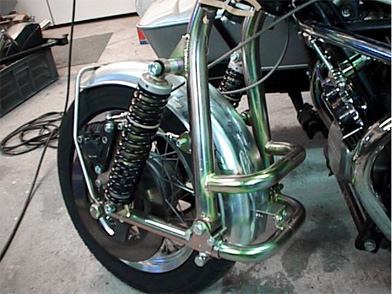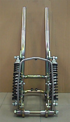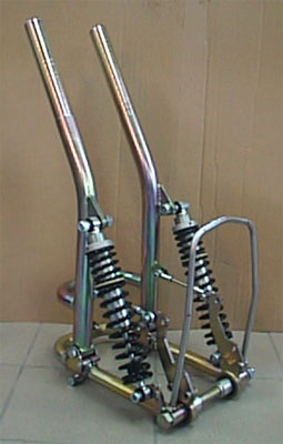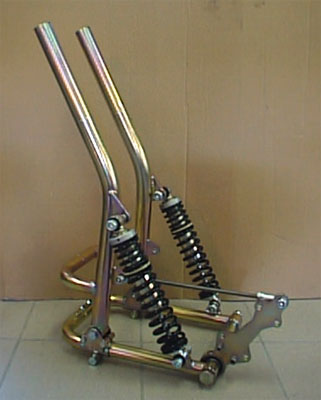 mit stufenloser Nachlaufeinstellung Die Vorderradschwingen werden in drei Standardbreiten gefertigt: In 215mm, 235mm und 255mm, gemessen von Rohr Mitte zu Mitte. Über eine auf dem Schwingenbügel verschiebbare Klemmschelle kann der Nachlauf von 30mm bis Solowert eingestellt werden. Auf Wunsch fertigen wir auch Schwingen mit kürzerem Nachlauf und anderen Breiten. Außerdem fertigen wir Bremszangenhalter für alle Bremszangen. Alle Teile sind galvanisch verzinkt, serienmäßig verwenden wir Bilstein Federbeine. Für die Vorderradschwingen gibt es ein Fahrzeug-Teilegutachten inkl. Montageanleitung und Ersatzteilliste. |